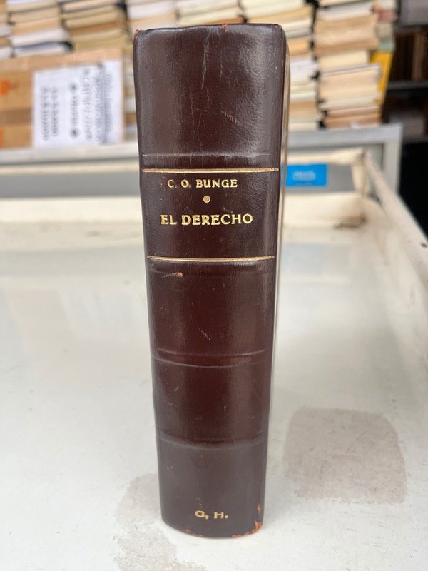 Edición antigua y de gran valor histórico, encuadernada en cuero con letras doradas en lomo. Obra clásica de Carlos Octavio Bunge, jurista y sociólogo argentino de principios del siglo XX, que aborda el concepto del derecho desde una perspectiva filosófica, histórica y social.