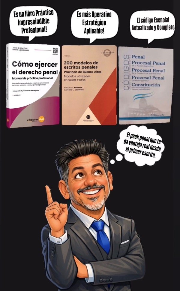 Un combo pensado para quien ejerce —o quiere ejercer— penal con herramientas reales de trabajo. Doctrina aplicada, modelos listos para usar y normativa unificada en un solo pack. Ahorra tiempo, mejora tus escritos y litiga con respaldo técnico.