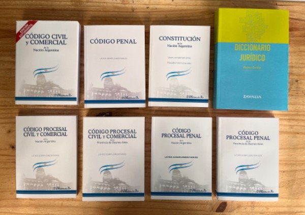 Civil + penal + constitución + procesal penal nación + procesal penal prov + procesal civil y comercial nación + procesal civil y comercial prov + diccionario jurídico.